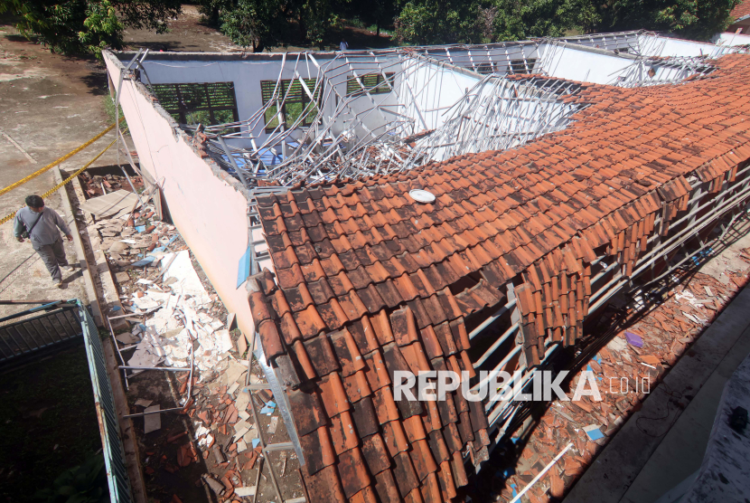 BPBD Kabupaten Bogor mengungkapkan atap SMKN 1 Gunung Putri ambruk diterjang hujan dan angin kencang pada Senin (3/11/2025), dan lima bangunan sekolah rusak serta 42 siswa menjadi korban luka-luka akibat insiden tersebut.