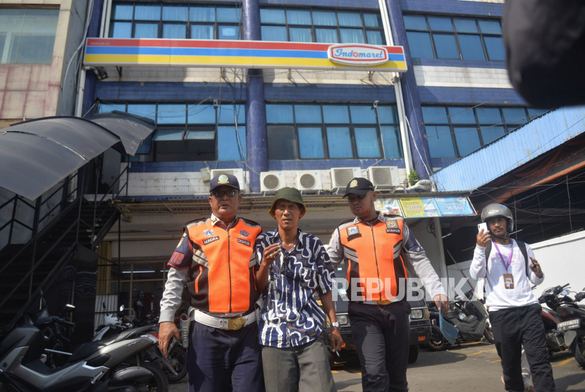 In Picture: Petugas Gabungan Lakukan Penertiban Juru Parkir Liar di Minimarket