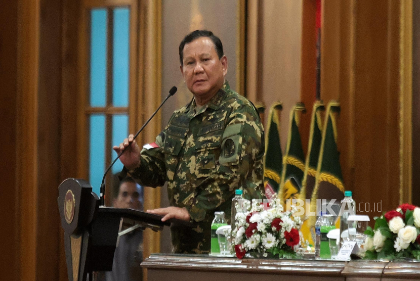 Presiden Prabowo Subianto memberikan pembekalan pada kegiatan rapat kerja dan retret Kabinet Merah Putih 2024-2029 di Ruang Makan Husein Taruna Akademi Militer, Magelang, Jawa Tengah, Jumat (25/10/2024). Dalam pembekalan tersebut Prabowo menyampaikan agar para Kabinet Merah Putih dan Utusan Presiden dapat melihat semangat, disiplin seorang prajurit yang siap berkorban jiwa dan raga untuk bangsa dan negara, sehingga para menteri siap untuk membela kepentingan bangsa dan rakyat Indonesia.