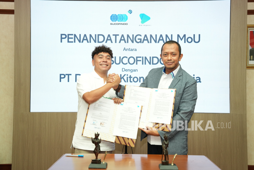 Direktur Layanan Industri Sucofindo Budi Utomo dan CEO & Founder Containder Billy Mambrasar meneken naskah MoU di Jakarta, Selasa (24/3/2025).