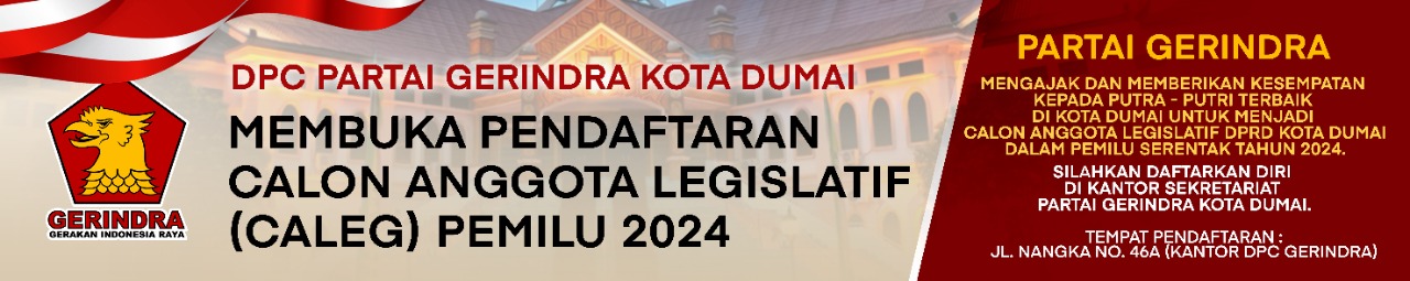 Teraspojok.com – Dewan Pimpinan Cabang (DPC) Partai Gerindra Kota Dumai buka peluang kepada warga untuk menjadi Calon Anggota Legislatif (Caleg) DPRD Kota Dumai pada Pemilu 2024 mendatang.