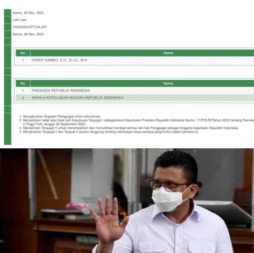 Dilansir dari situs Sistem Informasi Penelusuran Perkara (SIPP) PTUN Jakarta, Sambo mengajukan gugatan pada Kamis (29/12).
