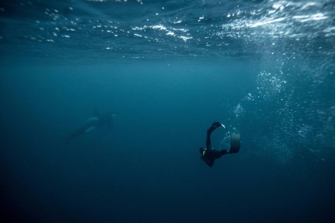 Meluncur diam-diam melalui perairan Arktik Norwegia yang dingin, juara dunia freediver Arthur Guerin-Boeri menentang suhu glasial dan kegelapan untuk bertemu dengan salah satu predator laut yang paling menakutkan yaitu paus pembunuh.
