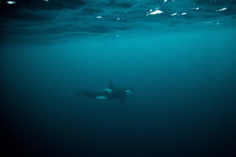 Foto: Olivier Morin/AFPSeekor sirip muncul dari kedalaman yang suram di pulau Spildra di ujung utara negara Skandinavia itu.