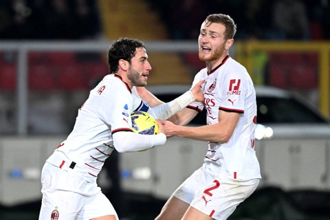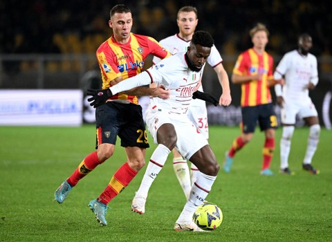 AC Milan menahan imbang Lecce dengan skor 2-2 pada pentas Liga Italia, di Stadio Via del mare, Lecce, Italia, Minggu (15/1) dini hari WIB.