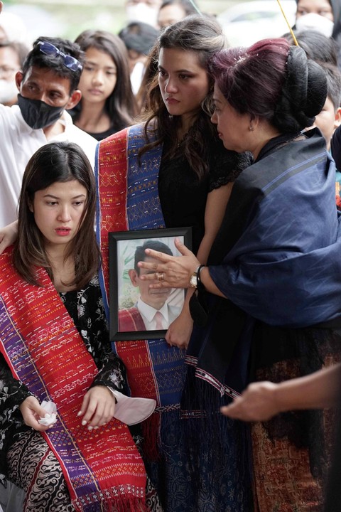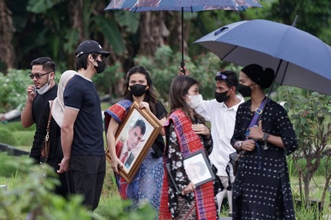 Foto: Agus ApriyantoHujan turun rintik-rintik mengiringi pemakaman ayah Marsha Aruan.
