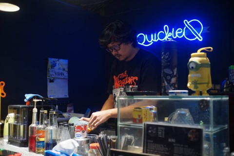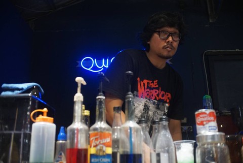 Seorang barista meracik minuman di salah satu kedai kopi di kawasan Blok M, Jakarta Selatan pada Sabtu (7/1/2023). Foto: Iqbal Firdaus/kumparan