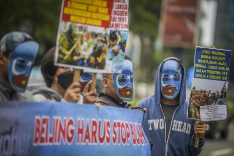 Sejumlah massa dari Aliansi Mahasiswa Islam (AMI) menggelar aksi teatrikal saat menggelar unjuk rasa di depan Kedutaan Besar China, Kuningan, Jakarta, Jumat (3/2/2023). Foto: ANTARA FOTO/Galih PradiptaDalam aksi tersebut mereka menuntut agar Pemerintah China bertanggungjawab atas segala bentuk tindakan kekerasan dan pelanggaran HAM terhadap kelompok muslim Uighur khususnya tragedi di Ghujla 5 Februari 1997. Foto: ANTARA FOTO/Galih PradiptaAliansi Mahasiswa Islam (AMI) menggelar aksi teatrikal untuk bentuk solidaritas kepada tindakan kekerasan dan pelanggaran HAM terhadap kelompok muslim Uighur khususnya tragedi di Ghujla 5 Febuari 1997. Foto: ANTARA FOTO/Galih PradiptaSejumlah massa dari Aliansi Mahasiswa Islam (AMI) menggelar aksi teatrikal saat menggelar unjuk rasa di depan Kedutaan Besar China. Foto: Dok. Istimewa