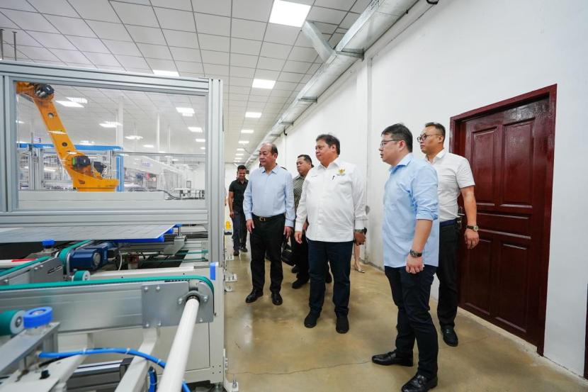 Menko Bidang Perekonomian Airlangga Hartarto meninjau pabrik di kawasan industri Wiraraja Batam, Kepri, Senin (26/8/2024).