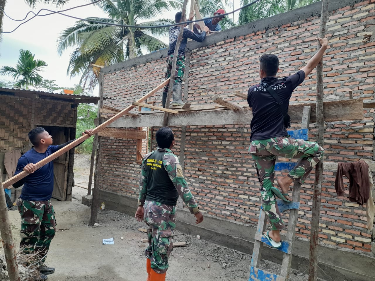 Diskominfotiks Rohil – Pada hari keenam pelaksanaan TNI Manunggal Membangun Desa (TMMD) ke-125 Tahun Anggaran 2025 Kodim 0321 Rokan Hilir (Rohil), Satgas TMMD bersama warga setempat bergotong royong merehabilitasi Rumah Tidak Layak Huni (RTLH) milik Slamet, Selasa (29/7/2025) di Kepenghuluan Rokan Baru, Kecamatan Pekaitan, Rokan Hilir, Riau.