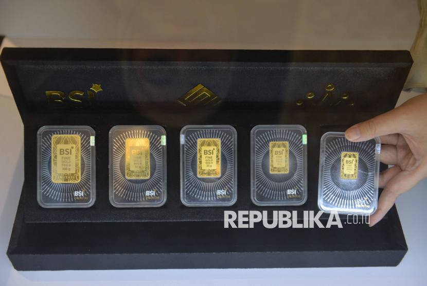 Karyawan menata produk emas BSI saat kegiatan peninjauan kesiapan Bank Emas BSI di Gedung BSI, Jakarta, Rabu (5/3/2025).