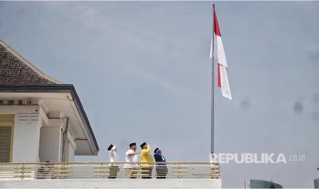 Ketua Umum PAN, Ketua Umum Partai Golkar, Ketua Umum Partai Gerindra dan Ketua Umum PKB menghormat ke arah bendera Merah Putih saat deklarasi dukungan Pilpres 2024 di Museum Perumusan Naskah Proklamasi, Jakarta, Ahad (13/8/2023). (FOTO : Republika/Prayogi)