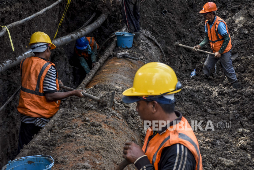 (ILUSTRASI) Perbaikan pipa transmisi air.