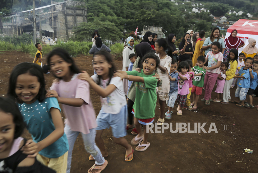 Teraspojok.com, CIBADAK. — Anak – anak korban longsor mengikuti kegiatan pemulihan trauma di Cibatuhilir, Sekarwangi, Cibadak, Kabupaten Sukabumi, Jawa Barat, Jumat (26/1/2024).