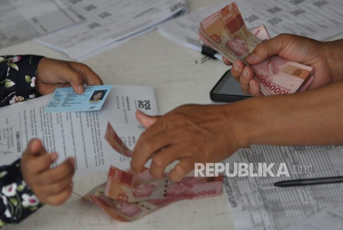 Petugas menyerahkan uang bantuan program keluarga harapan (PKH) dan bantuan pangan non tunai (BPNT) di Kantor Pos Indonesia Bengkulu di Kota Bengkulu, Bengkulu, Jumat (17/2/2024). Kementerian Sosial melalui PT Pos Indonesia (Persero) mulai mendistribusikan bantuan sosial tahap pertama masing-masing jumlah keluarga penerima manfaat dari bantuan PKH sebanyak 10 juta penerima, sedangkan BPNT mencapai 18,8 juta penerima dengan nilai anggaran mencapai Rp496 triliun yang berasal dari APBN 2024.