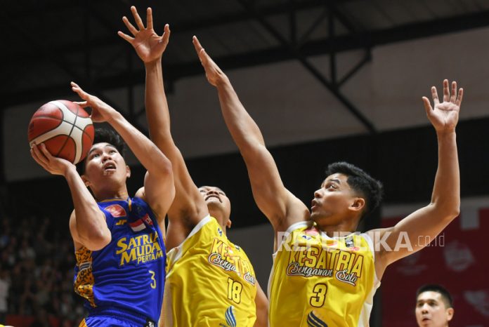 Teraspojok.com, JAKARTA — Satria Muda Pertamina Jakarta berhadapan dengan Ksatria Bengawan Solo dalam laga penyisihan Grup A IBL All Indonesian Piala Menpora di Hall Basket Senayan, Gelora Bung Karno, Jakarta, Ahad (22/9/2024). Satria Muda menang dengan skor 72-67.