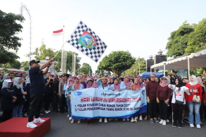Teraspojok.com, JAKARTA — Peringatan Hari Buruh Internasional di Kabupaten Jombang dilakukan Pemerintah Kabupaten (Pemkab) Jombang bersama kalangan pekerja. Dinas Tenaga Kerja Jombang mengadakan rangkaian kegiatan peringatan dengan Fun Walk yang diikuti 4000 pekerja, Rabu (1/5/2024).