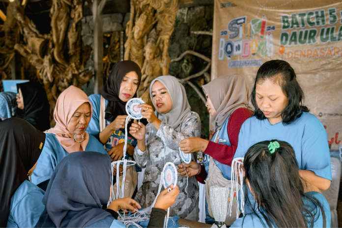 Dibimbing oleh I Gede Rediawan dan Ibu Madinah sebagai Nasabah PNM Mekaar Unit Kuta Selatan, seluruh peserta membuat kerajinan dari limbah kaca yang didaur ulang dengan dipanaskan dan dibentuk ulang menjadi vas bunga lalu kerajinan lain dari limbah bulu ayam, bebek dan angsa yang dibentuk seperti jaring berbentuk lingkaran dengan nama dream catcher.