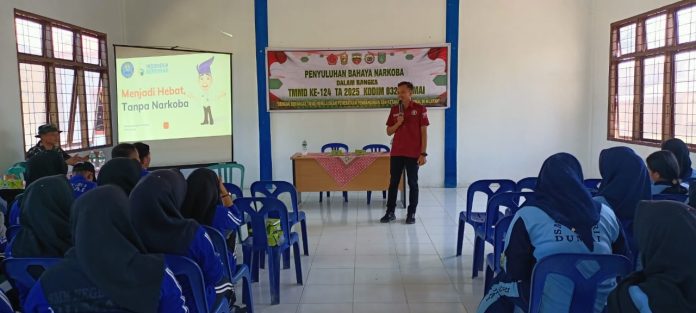DUMAI – Kegiatan Penyuluhan Bahaya Narkoba Bagi Generasi Muda dan Masyarakat Kelurahan Bukit Kayu Kapur oleh BNK Kota Dumai dalam Rangkaian TMMD ke-124 Kodim 0320 Dumai, Kamis (29/05/25).