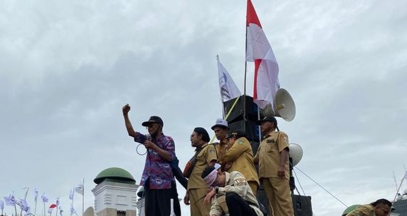 Ribuan pendemo itu memenuhi depan Gedung DPR RI yang beralamat di Jalan Gatot Subroto, Jakarta Pusat, pada Rabu (25/1) pagi.