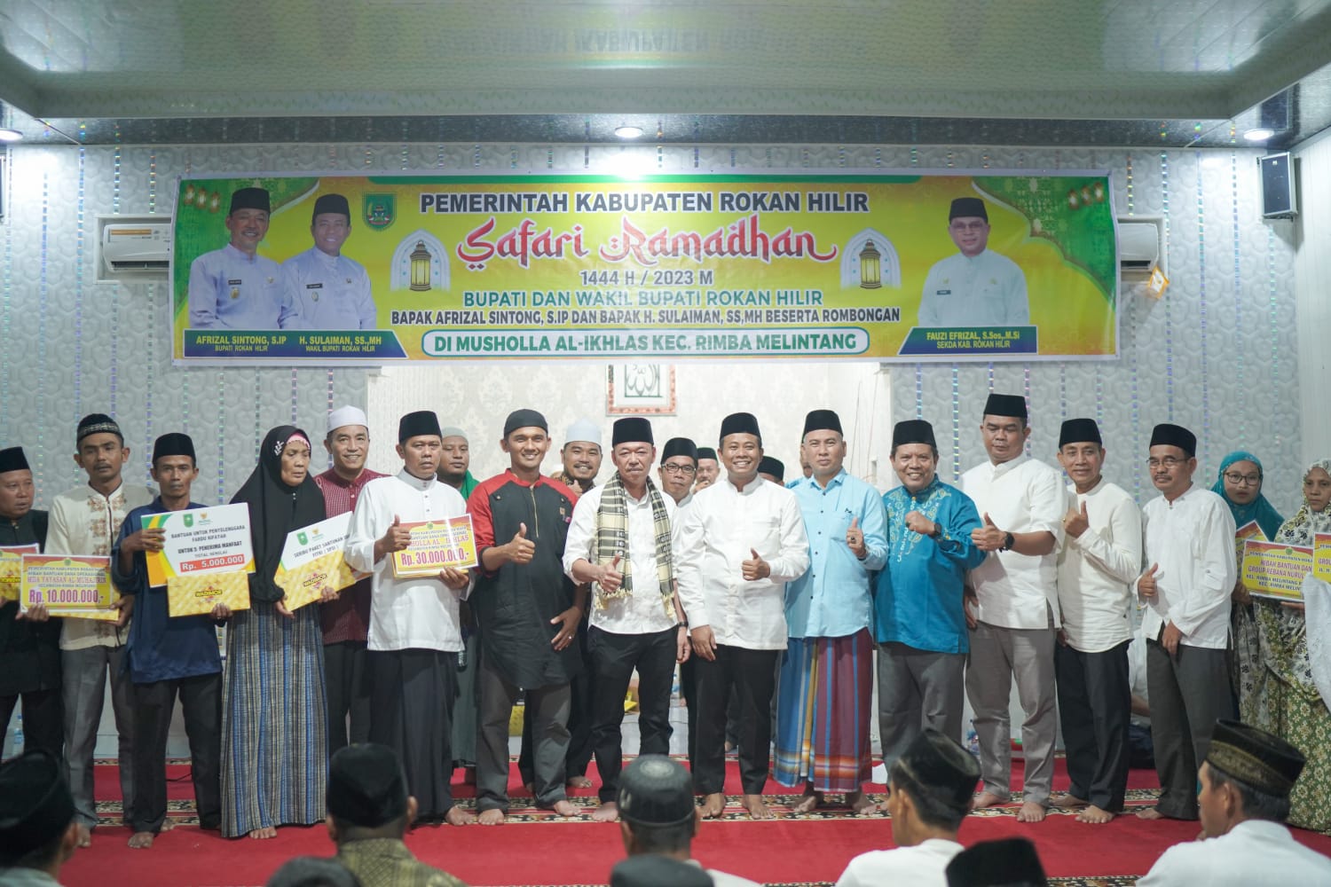 Safari Bupati Rohil dan rombongan, dimulai dengan menggelar sholat Isya berjamaah sekaligus melaksanakan sholat tarawih bersama masyarakat di Kelurahan Rimba Melintang dan diisi juga dengan kegiatan ceramah agama oleh ustadz Taubatan Nasuha.