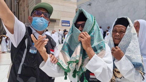 Jemaah haji Indonesia usai salat di Masjidil Haram, Makkah, Jumat (17/6/2022). Foto: Muhammad Iqbal/kumparan