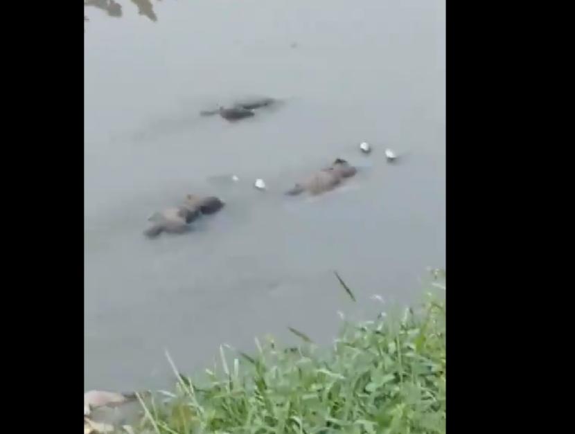 Petugas Badan Penanggulangan Bencana Daerah (BPBD) Kota Bekasi mengevakuasi tujuh mayat manusia yang ditemukan mengambang di Sungai yang terletak di belakang Perumahan Pondok Gede Permai (PGP) di Jatikasih Bekasi pada Ahad (22/9/2024) pagi. Jasad-jasad tersebut telah dievakuasi ke RS Polri.