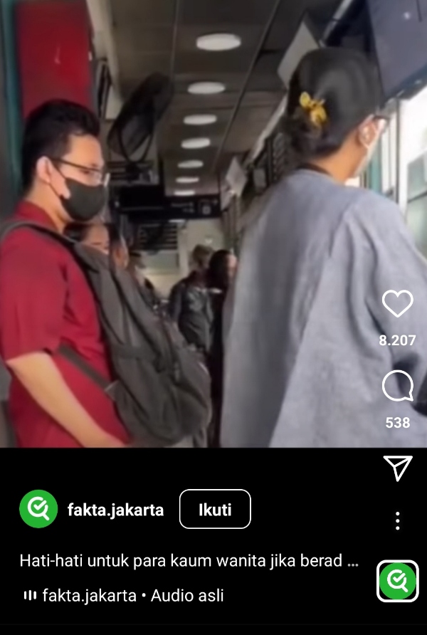 Dilihat Kamis (22/12), dalam video yang diunggah akun Instagram @fakta.jakarta, tampak pria berkacamata dan kemeja merah sedang menyodorkan ponselnya di depan seorang penumpang wanita.