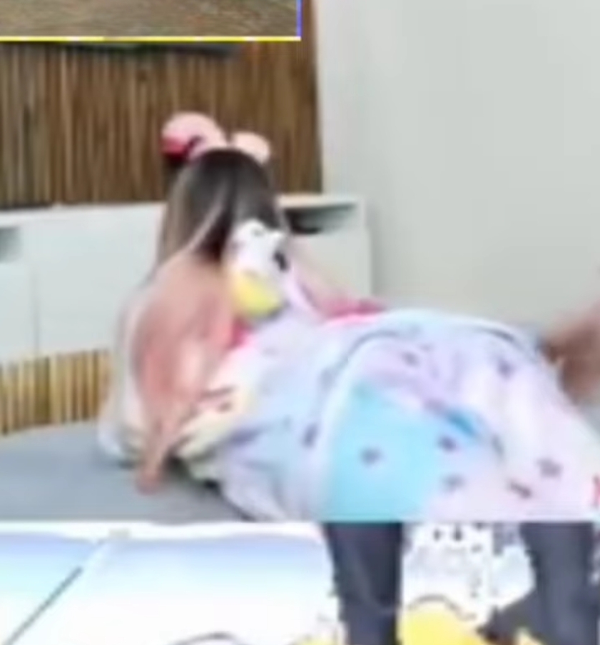 Seorang wanita yang dinobatkan sebagai Putri Pubg lagi asyik berbari dengan posisi tengkurap.